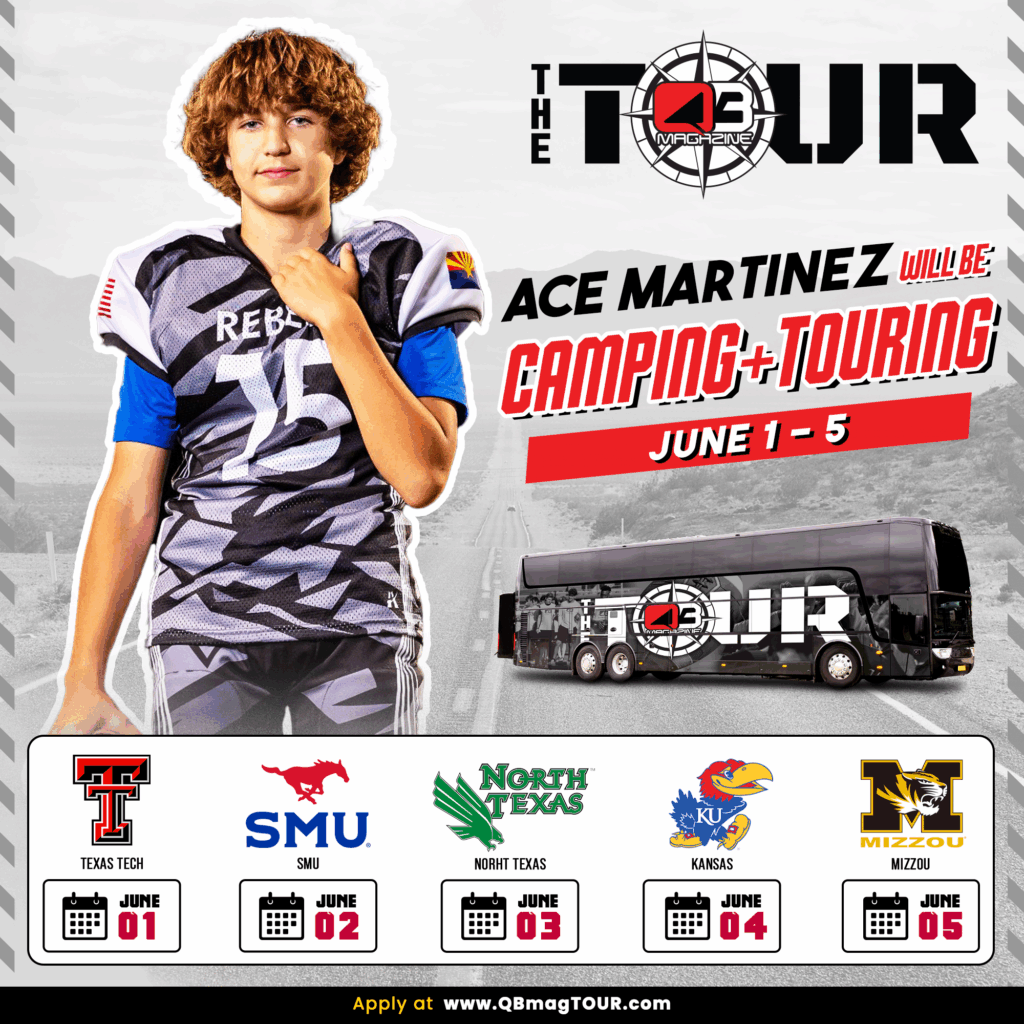 This summer, Ace will take another major step in his football journey. From June 1–6, he’ll travel across the country on the Quarterback Magazine College TOUR—one of the youngest 8th graders making the trip. He’ll compete alongside quarterbacks from all over the nation at elite college football camps, showcasing his skills directly in front of college coaches. The tour includes stops at Texas Tech University, SMU, the University of North Texas, the University of Kansas, and the University of Missouri. For Ace, it’s an opportunity not just to prove himself—but to grow, compete, and learn at the next level.