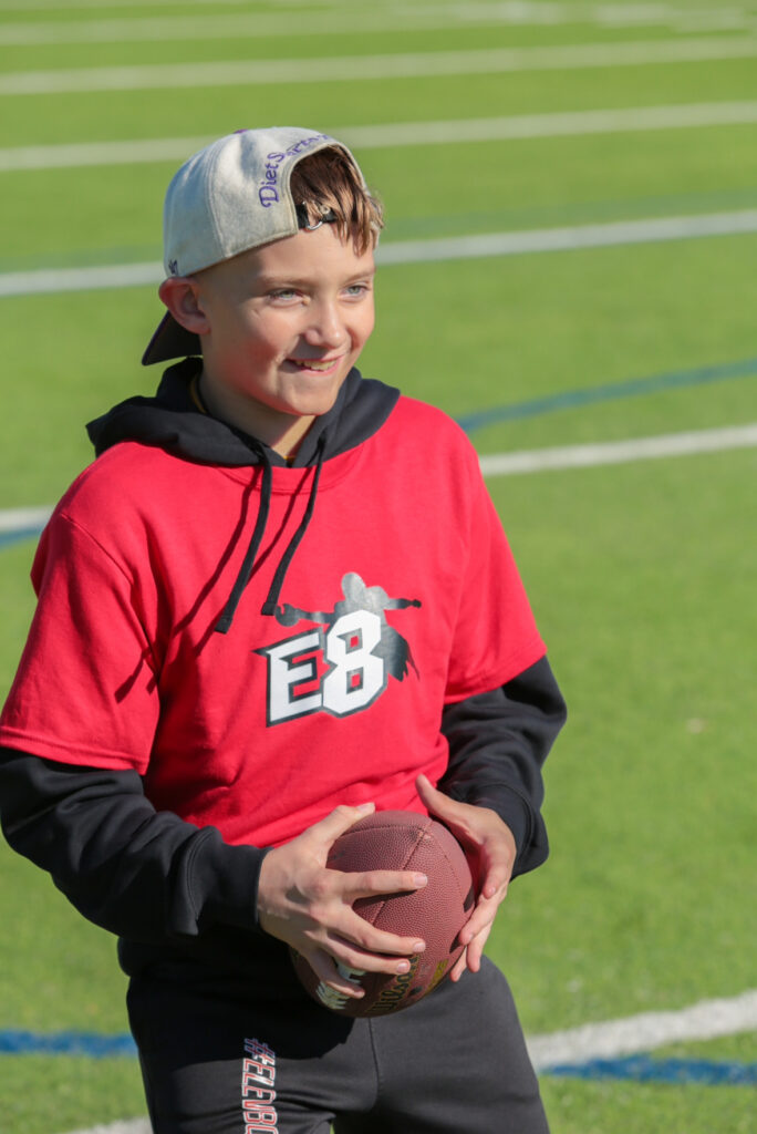 Outside of football, Evan is a multi-faceted individual. He enjoys playing with Legos and basketball, showing a love for creativity and other sports. His passion for football extends to attending quarterback camps, where he enjoys meeting up with fellow quarterbacks and friends. “I love the QB camps! Meeting up with my other QB friends is always great,” he says.